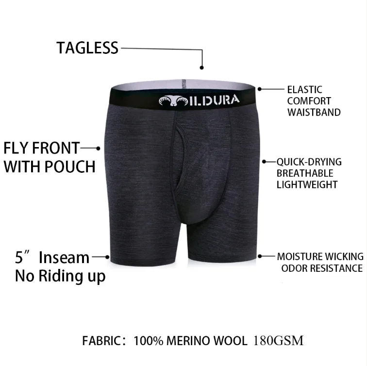 100% Merino Wool Boxer Briefs Men Underwear Merino Wool Boxer Underpants Men Boxer Brief Moisture Wicking Breathable Soft 180G