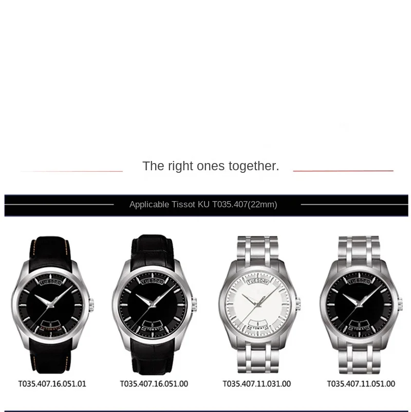 Genuine Leat/her Watch Strap for Tissot T035 Watchband Men's 1853 T035627 T035617 T035407 Series Arc Mouth Belt 22mm 23mm 24mm
