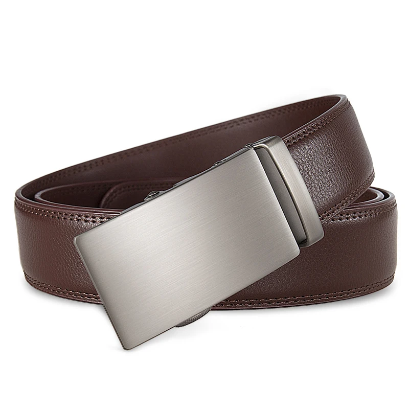 High Quality Genuine Leather Casual Belt Men, Adjustable Automatic Buckle Belts, Black/Brown Cuttable Ratchet Belt for men